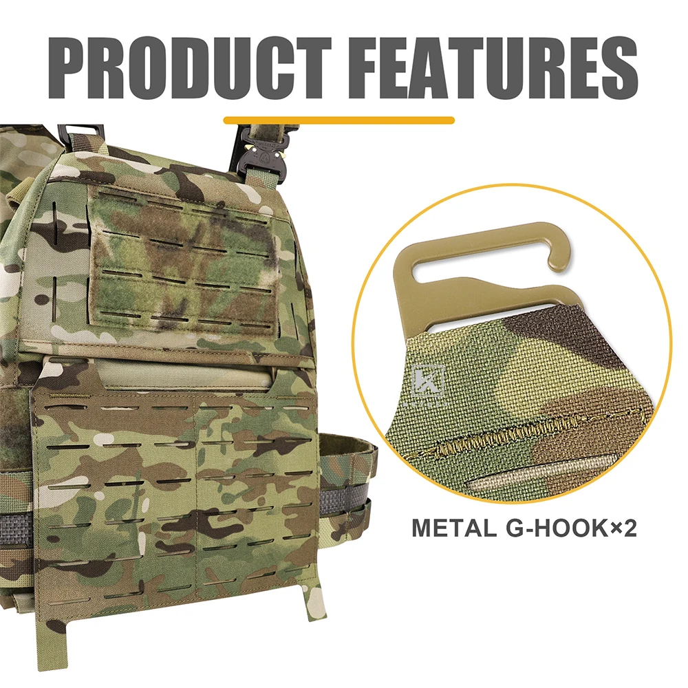2. Precise Laser cutting MOLLE panel with two adapting system – 1” G hook buckle and 1” Quick attach buckle.